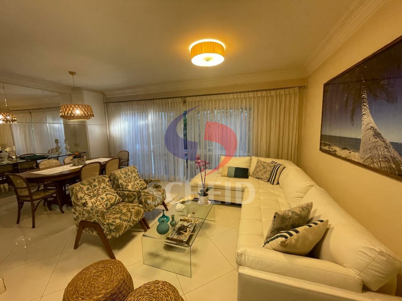 Amplo living com sala de TV, estar, jantar, lareira e bar